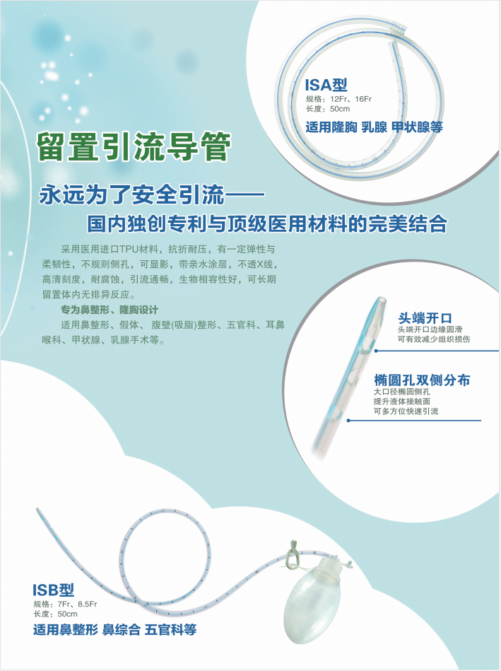 我公司最新研發(fā)的P型、ONV型、ISA型、ISB型引流管將會推出,服務于臨床。......