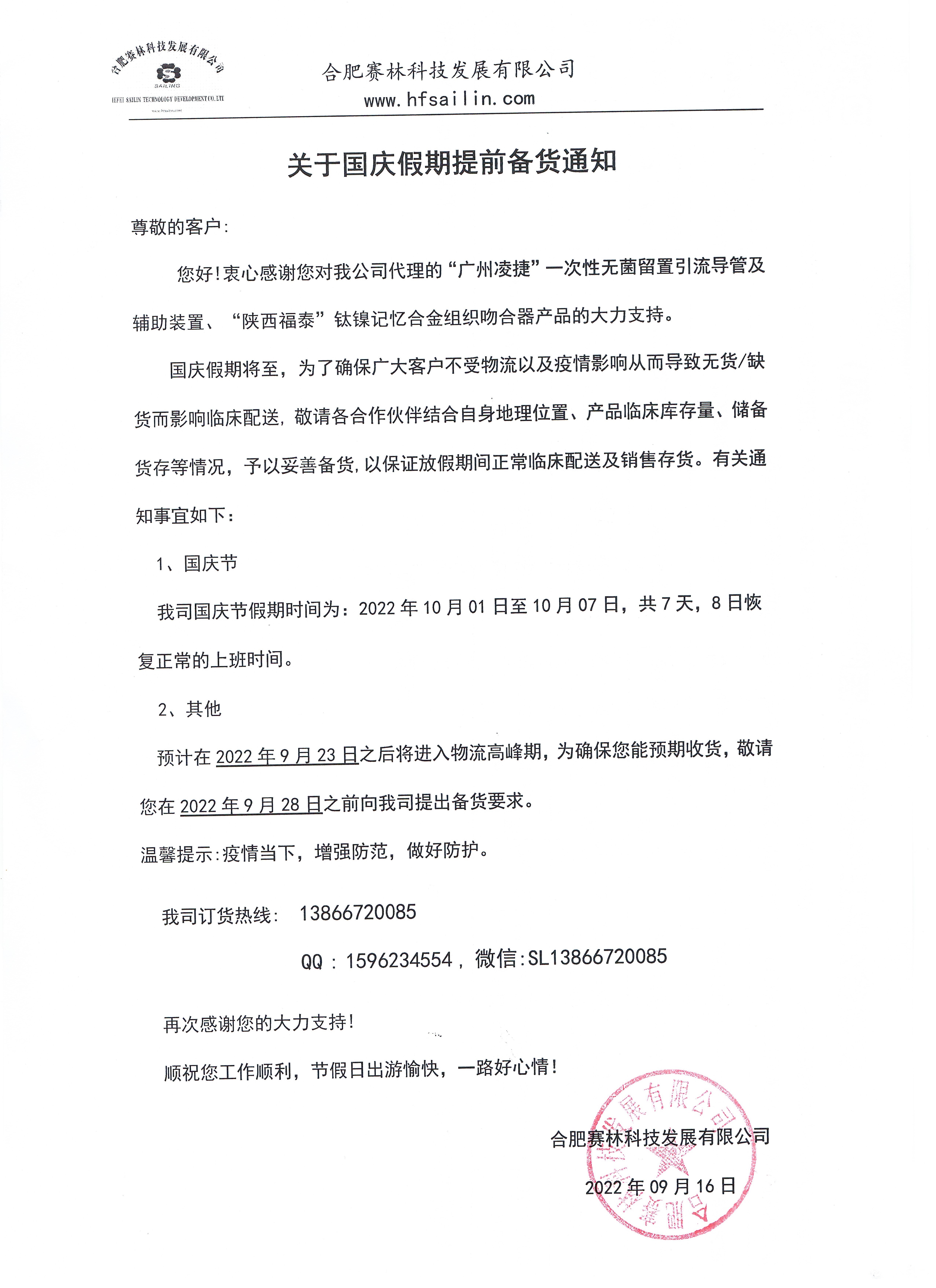 代理產(chǎn)品:腹腔鏡專用金屬懸吊;一次性使用胃造口營養(yǎng)輸送裝置;腸梗阻導(dǎo)管套件;一次性無菌留置引流導(dǎo)管及輔助裝置;鈦鎳記憶合金(皮內(nèi)、肌腱、美容)組織吻合器;鈦鎳記憶合金肛瘺內(nèi)口吻合器;鼻中隔固定夾板;一次性使用肺結(jié)節(jié)穿刺定位裝置。