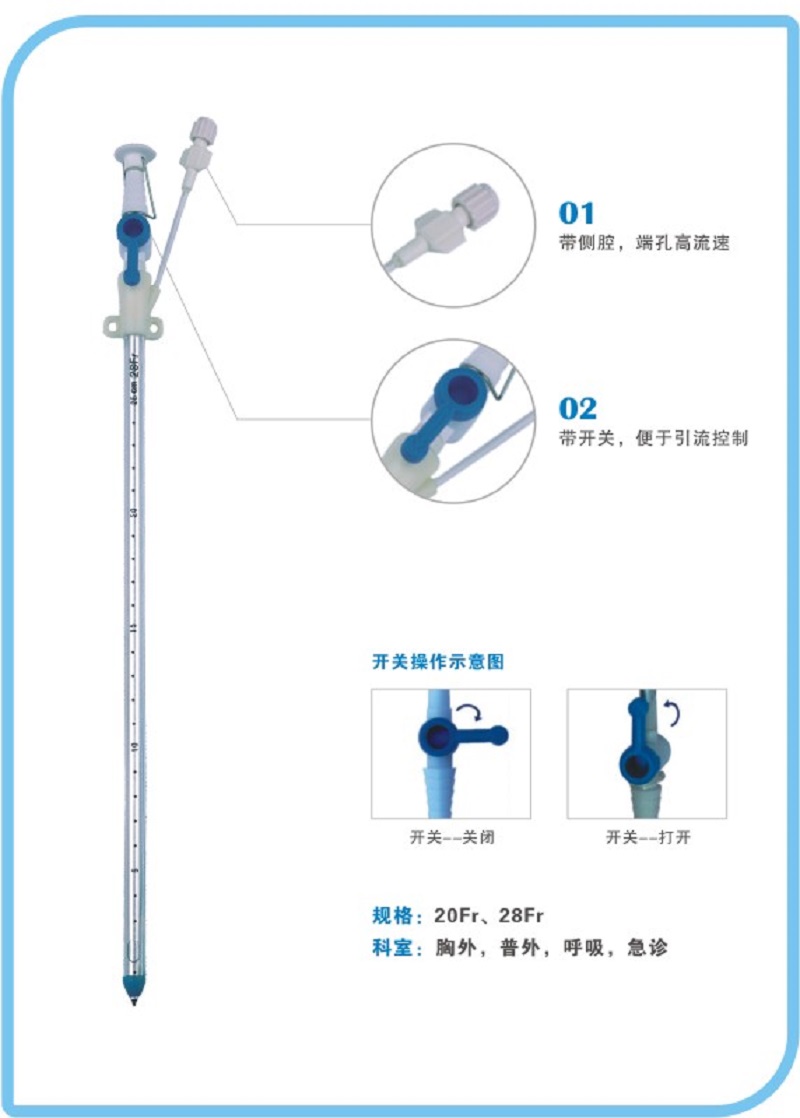 產(chǎn)品規(guī)格:12Fr/20Fr/28Fr 適用科室:胸外科,普外科,呼吸科,急診